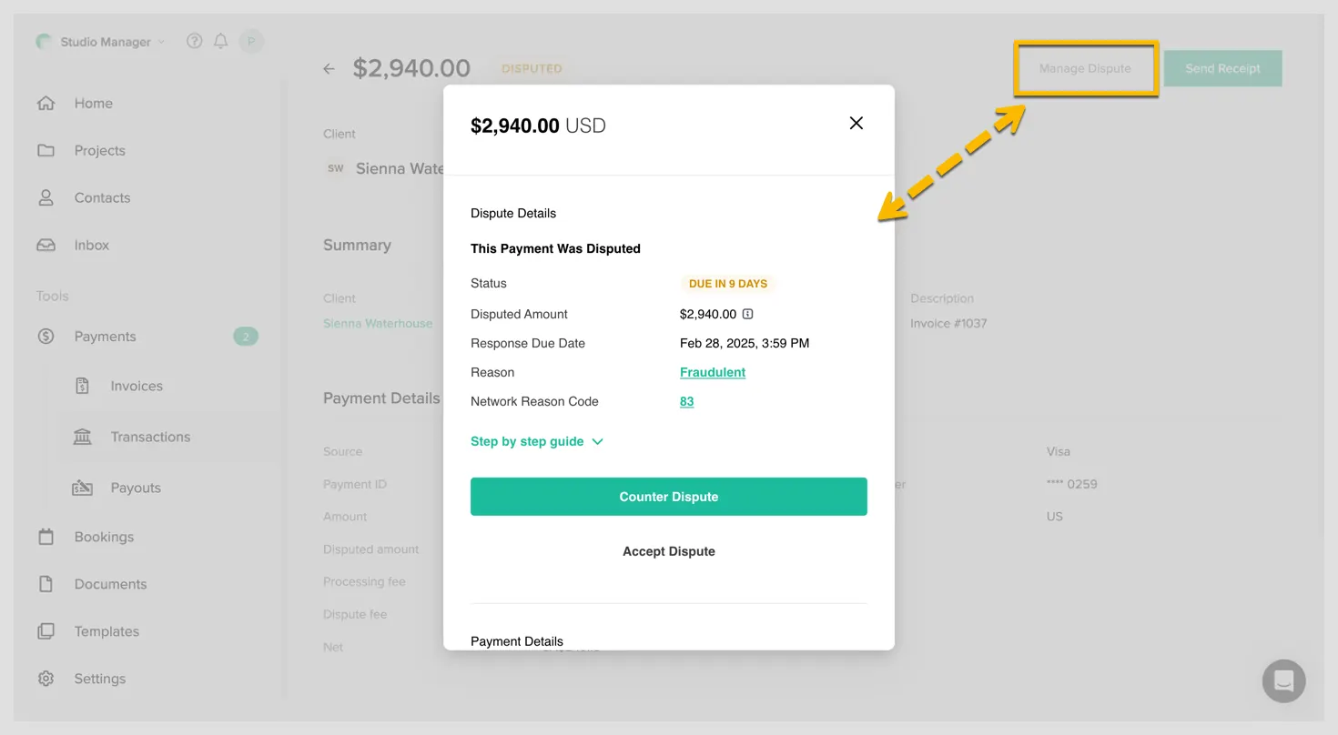 When you receive a dispute, start by reviewing the details in Studio Manager.